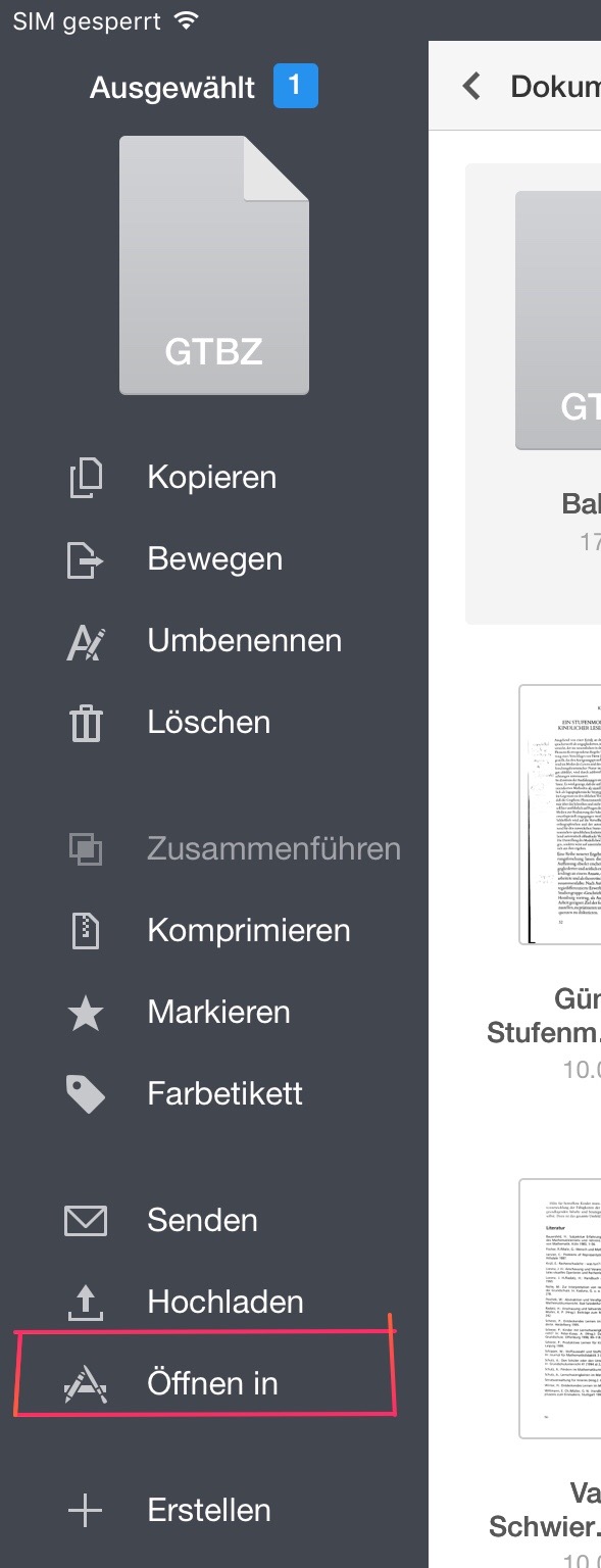 Möchte man nun mit einem zweiten iPad auf dieses Buch zugreifen, wählt man „Bearbeiten“ in den Downloads aus und setzt ein Häkchen auf das GTN-Buch.