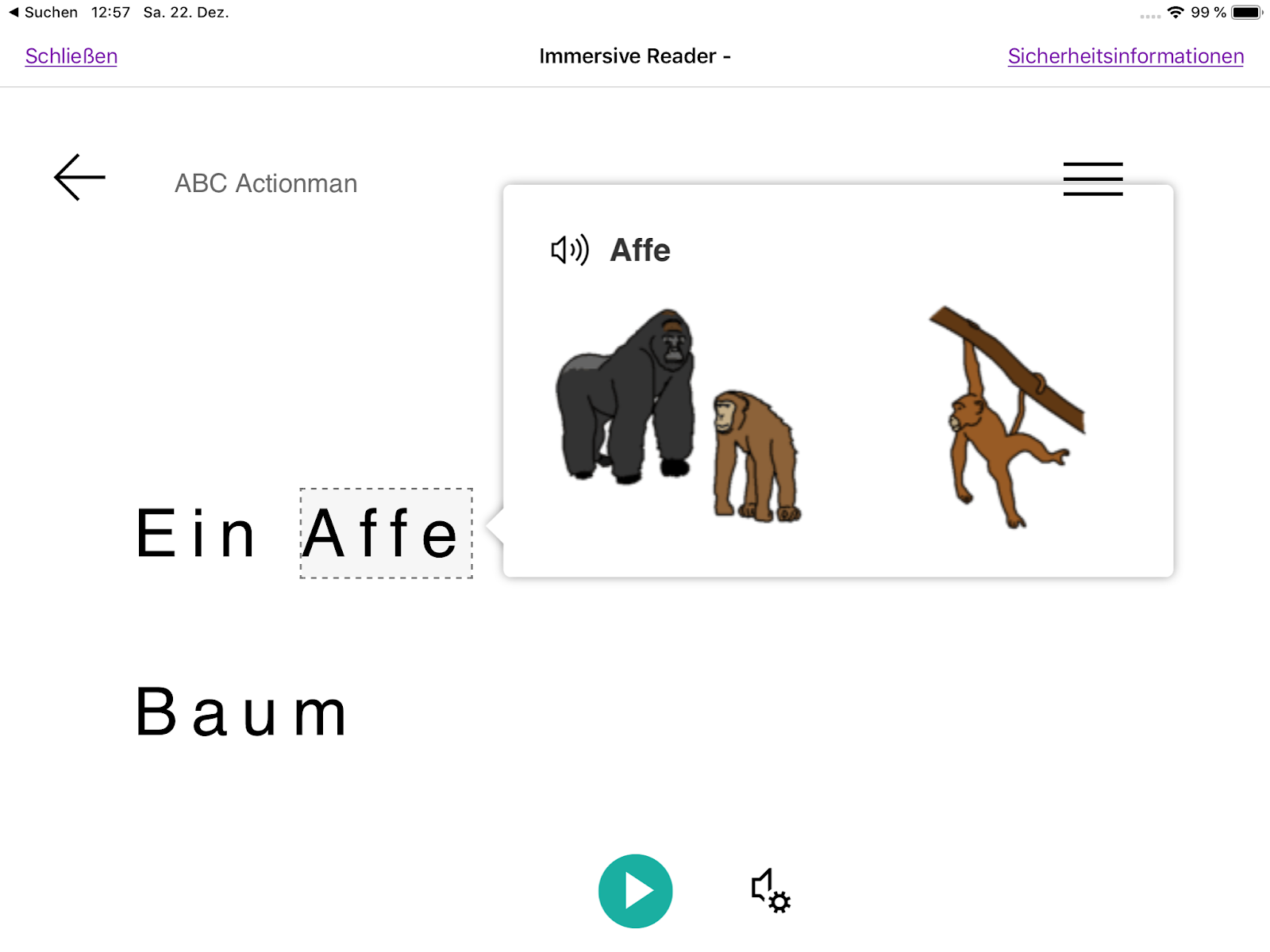 Als nächstes schreibt man einen Text und markiert ein Wort im plastischen Reader und das entsprechende Pictogramm wird angezeigt.