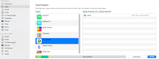 Wenn das iPad verbunden ist, klickt auf das Symbol des iPads in iTunes. Klickt dann auf Apps und scrollt dann ganz runter zur Dateifreigabe.