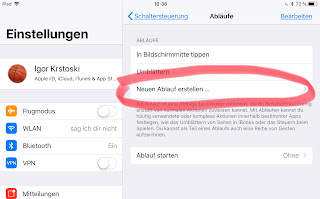 Dann muss man in den Bedienungshilfen unter der Schaltersteuerung einen Ablauf erstellen.