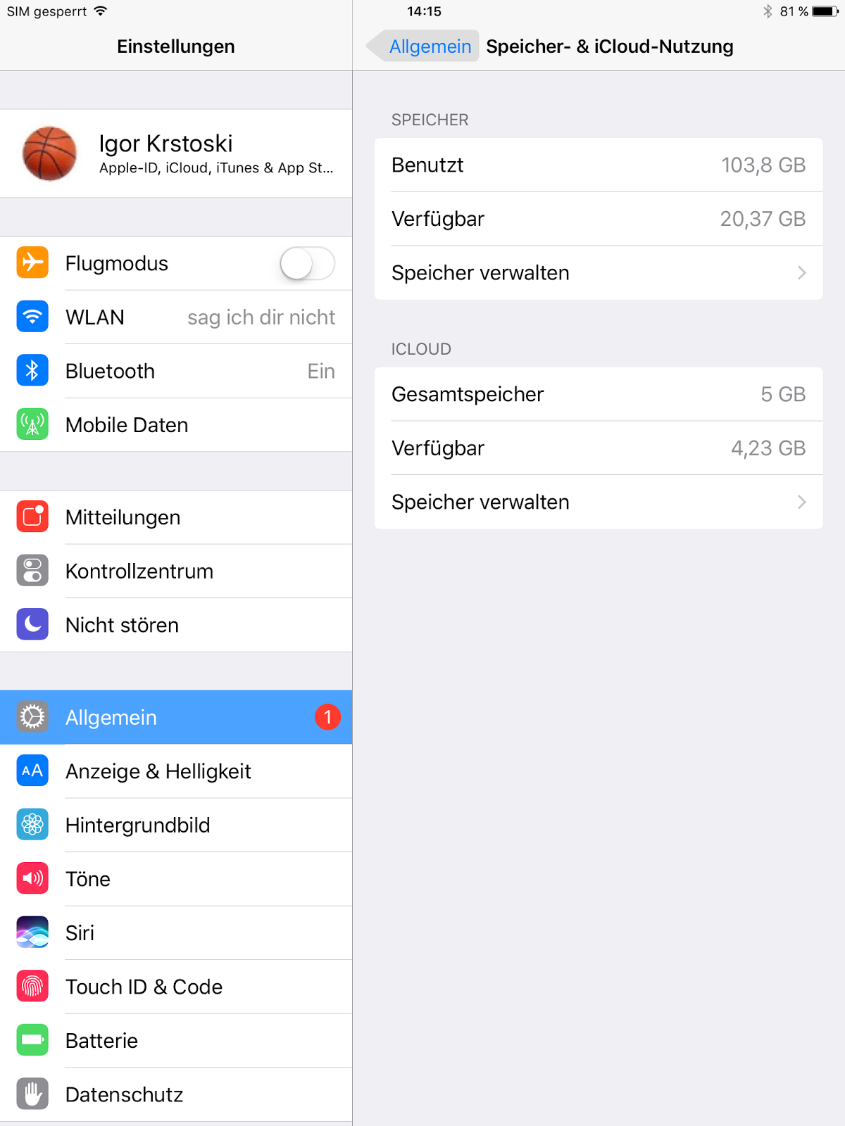 Danach öffnet im Speicher (nicht iCloud) den Speicher verwalten: